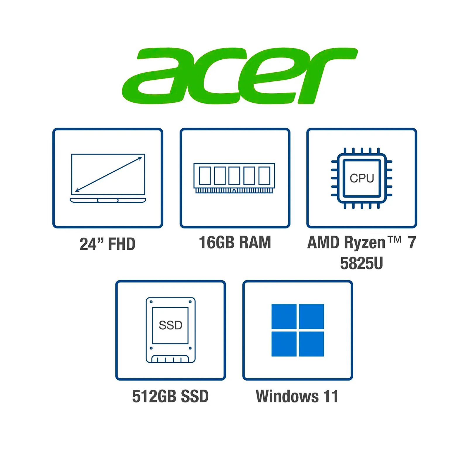 Aio Acer Aspire C24-2G-LR14 | 23,8′ FHD | AMD R7-5825U | 8GB RAM 512GB SSD | Negro