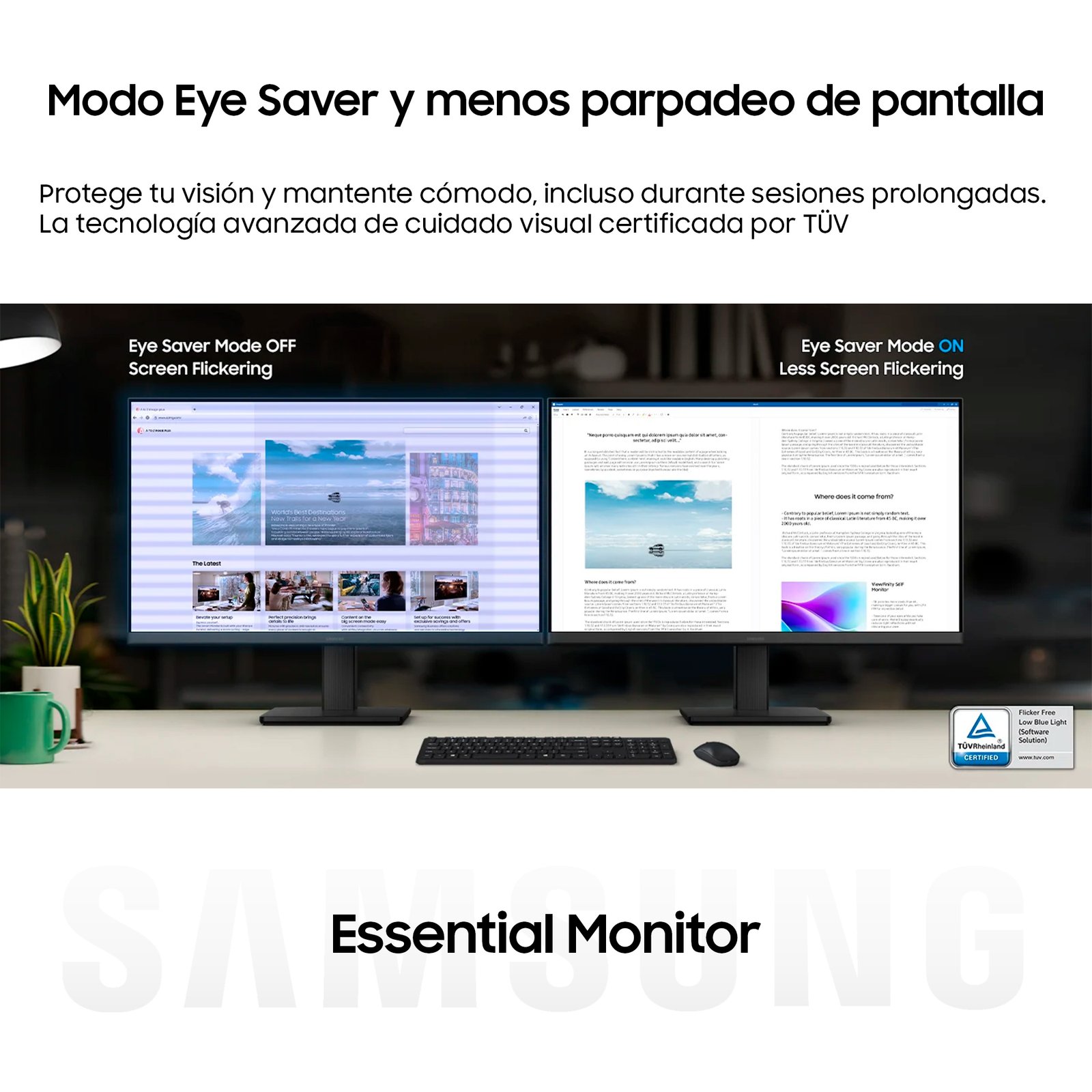 Modo Eye Saver: Tecnología diseñada para reducir la emisión de luz azul, permitiéndote trabajar o jugar durante horas sin cansancio ocular.