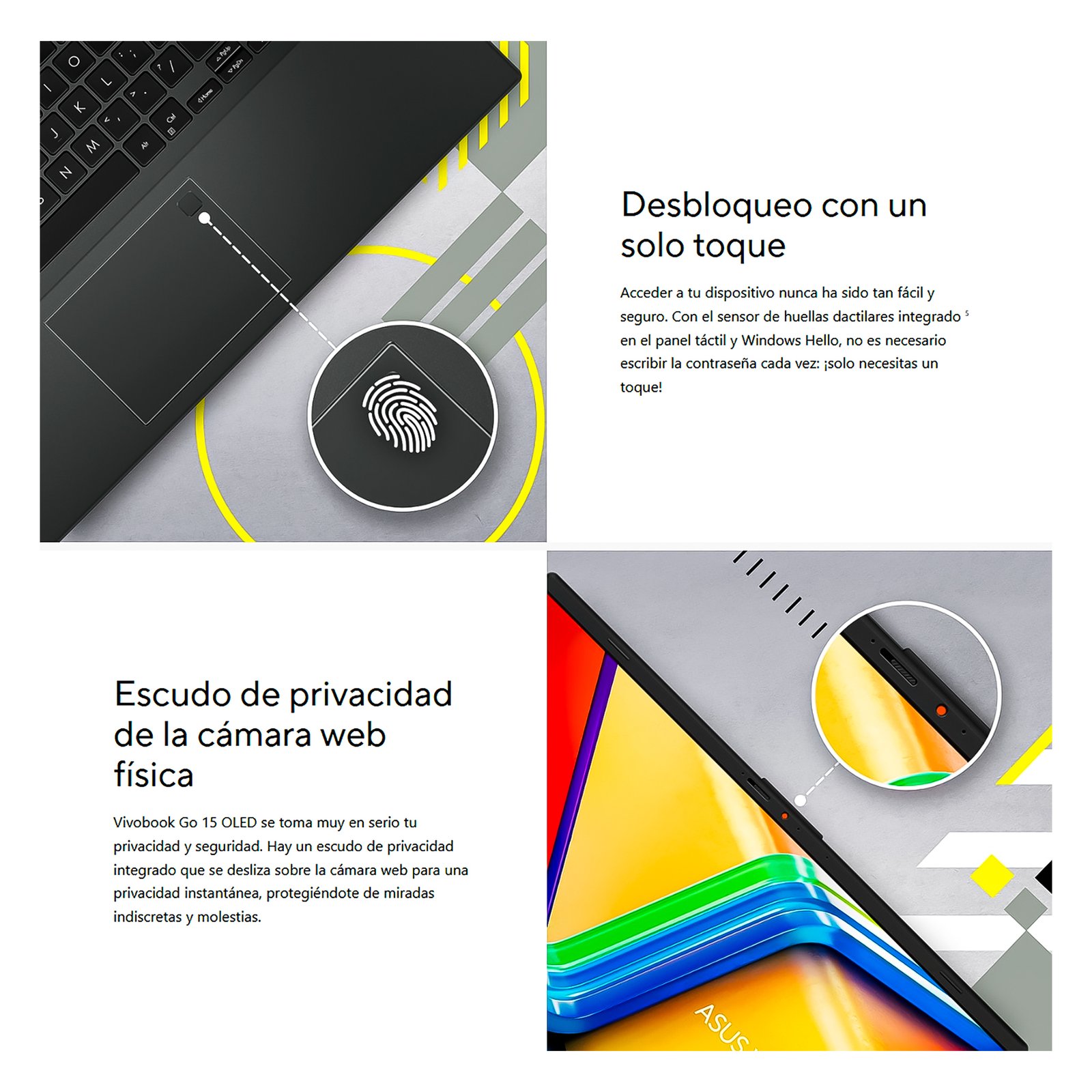 • Seguridad Biométrica: Incluye un lector de huella digital, permitiéndote iniciar sesión de forma rápida y segura sin necesidad de contraseñas.